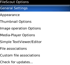 | FileScout - User Manual - Options A file manager Software for BlackBerry® Devices The "all in one" file, zip, text and image manager for your BlackBerry® |