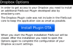 For the start, open the FileScout Options and scroll down to the Item 'Dropbox Plugin' - if you do not have such a Item present then you either have not the latest FileScout Version installed or you might use the free FileScout Lite Version.
