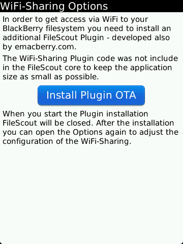 list FileScout will be automatically started and the WiFi-Sharing will be activated (no matter if you