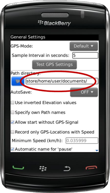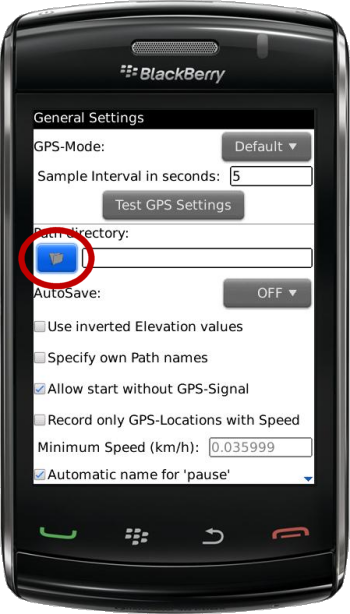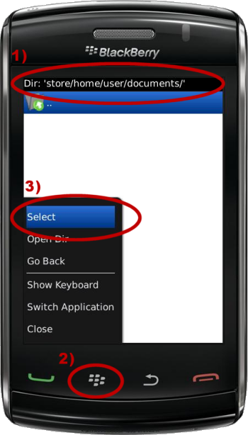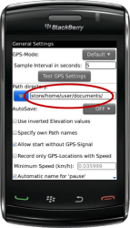 - Navigate to to a location on your BlackBerry file system in which you would like to save your logging information (Paths & Locations)