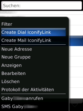 2) Press the #Menu... and select 'Create Dial/Mail IconifyLink' from the Menu |