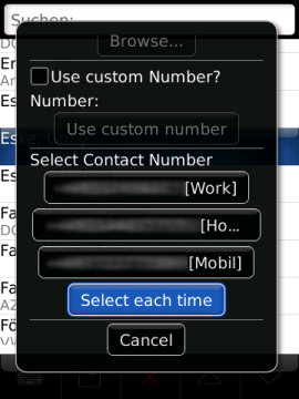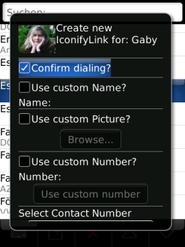 IconifyLink! depending on the Link configuration the Number will be instantly dialed or (like in the screenshot above) you can select the number that you would like to call. |