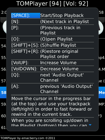 of your playlist. So finally with TOMPlayer you open any of your playlists, shuffle them and listen to the complete